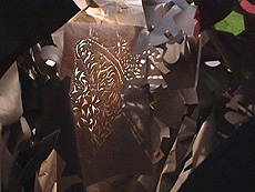 The piece was re-configured and housed in a new cardboard structure when shown in UK galleries the following year.